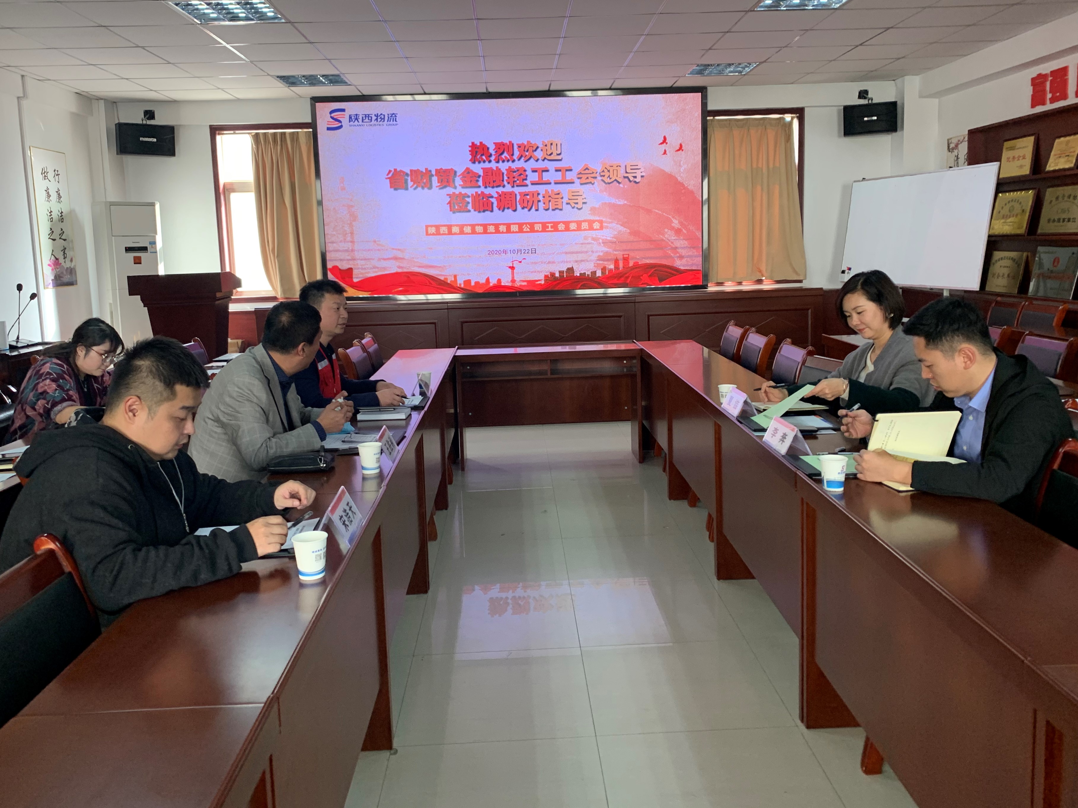 10月22日,陕西省财贸金融轻工工会副主席夏洁一行赴商储物流公司验收模范职工之家,了解掌握建家情况。物流集团工会副主席王胜利、商