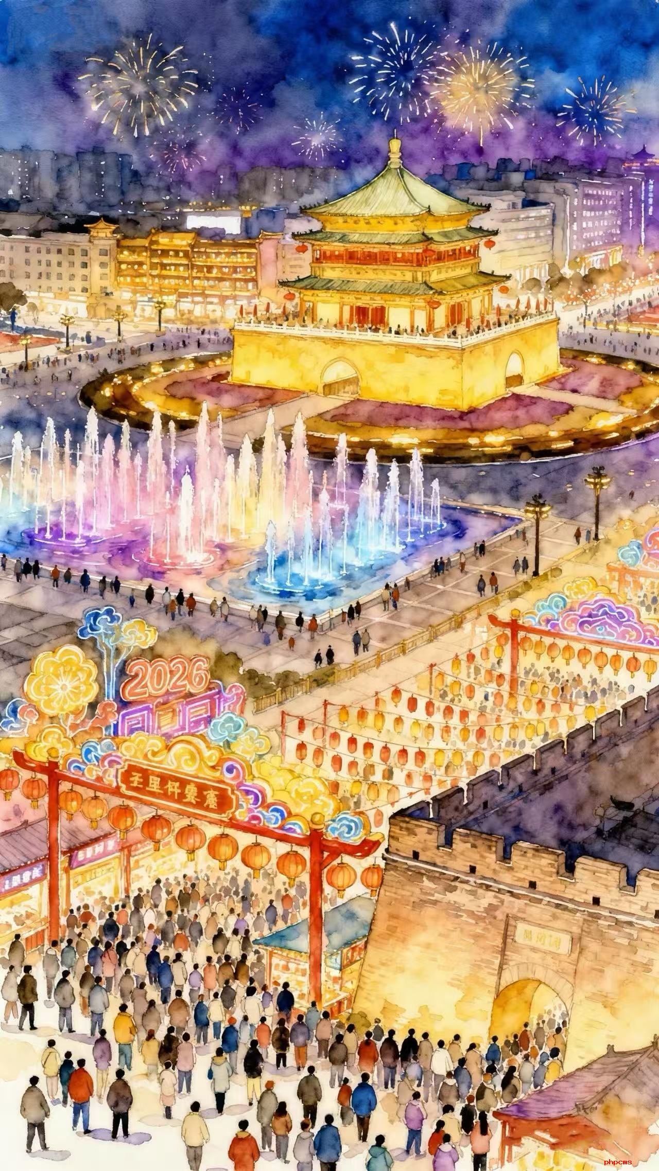 长安不负跨年约,春满古城福满川。