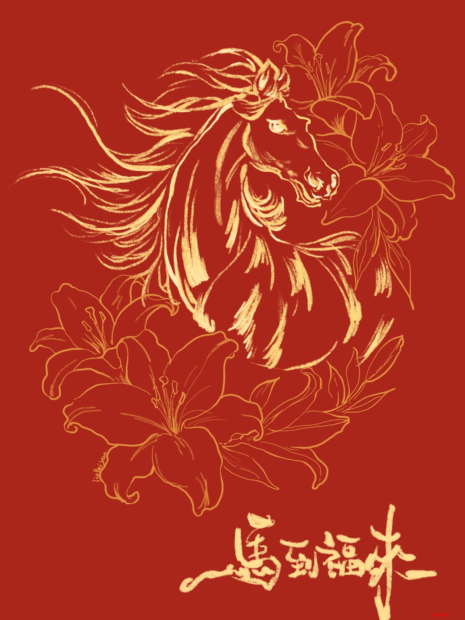 刘佩妍板绘作品——《马到福来》
